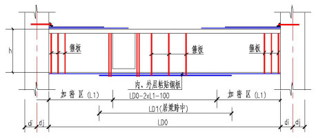 由静载试验可知,粘钢后梁体刚度显著提高,经济效益明显。梁粘钢设计图如下所示。